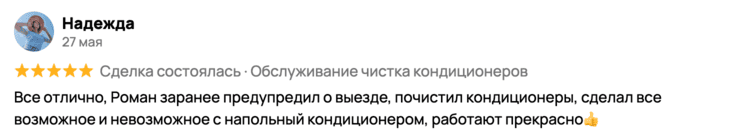 Мы очень ценим, что Вы рекомендуете нас как лучших специалистов по заправке, ремонту, чистке кондиционеров и сплит-систем